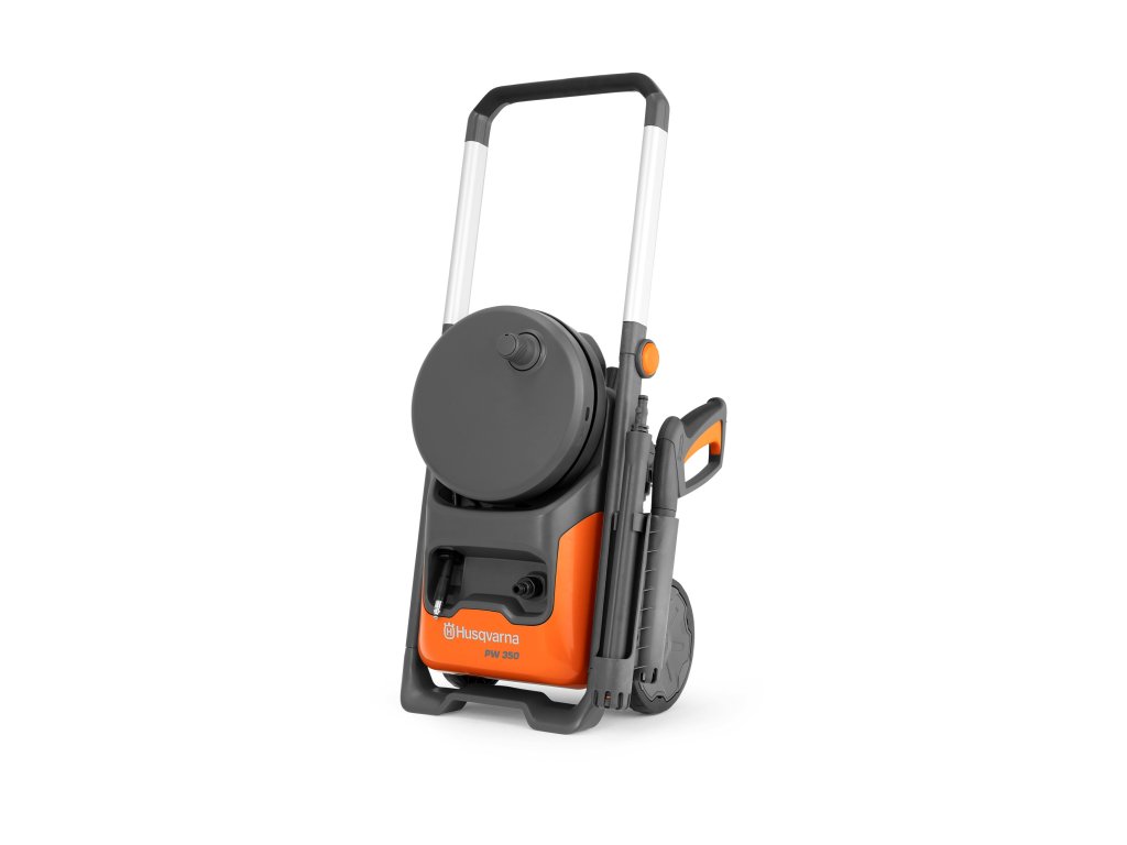 PW 350 je kompatibilní s několika doplňky a pro snadné dosažení optimálního nastavení pro každý úkol jsou na přístroji k dispozici trysky a vodítka tlaku. Po skončení práce lze hadici rychle svinout a efektivně uložit pomocí navijáku s podpůrným vodítkem. Čistič má také velká kola s měkkým běhounem pro skvělou trakci v náročném terénu a skládací hliníkovou rukojeť pro úsporné skladování.