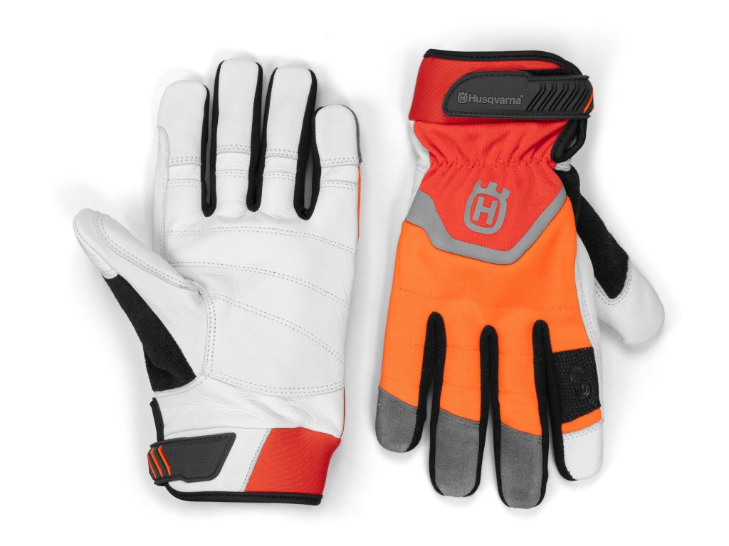 Kožené rukavice pro profesionální práci s řetězovou pilou
