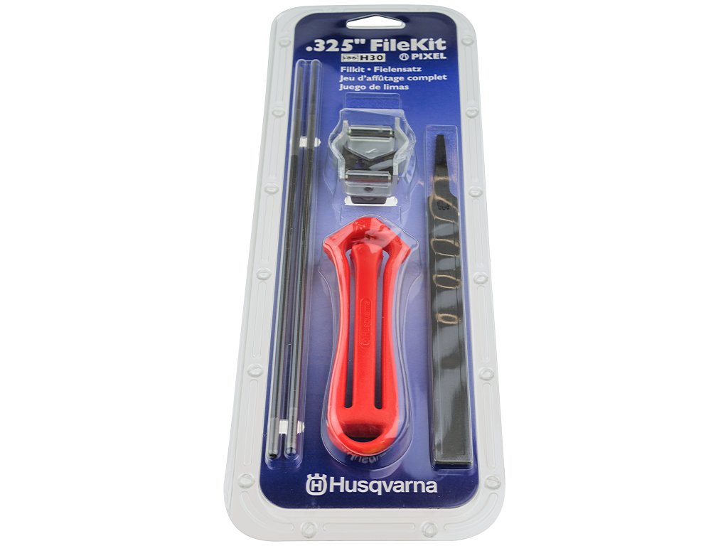 Kompletní sada na ostření řetězů pro snadné udržování stále nabroušeného řetězu. Se správně nabroušeným řetězem bude vaše práce snadnější a bezpečnější. Sada obsahuje rukojeť pilníku, kombinované vodítko nebo vodítko pro ostření a měrku pro snížení omezovacího zubu, dva kulaté pilníky a jeden plochý pilník.